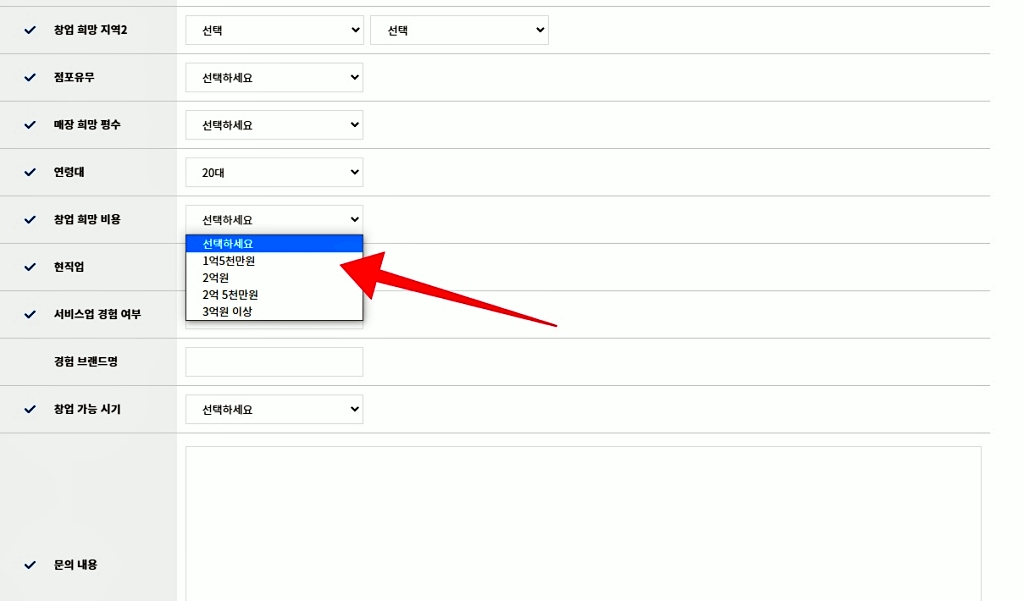 문의를 하게 되면 창업희망비용을 선택하게 되는데 최소 1억5천만원부터 선택이 가능합니다. 이디야 창업에 대해 알아보시려면 우선 본사 창업 설명회를 참석해보시기 바랍니다.